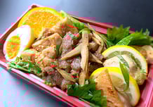 髙橋肉店の人気商品がたくさん詰まった特製弁当。ご予算やご希望をご相談ください。