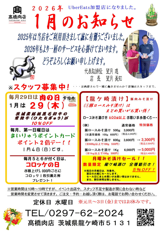 1月のお知らせ
